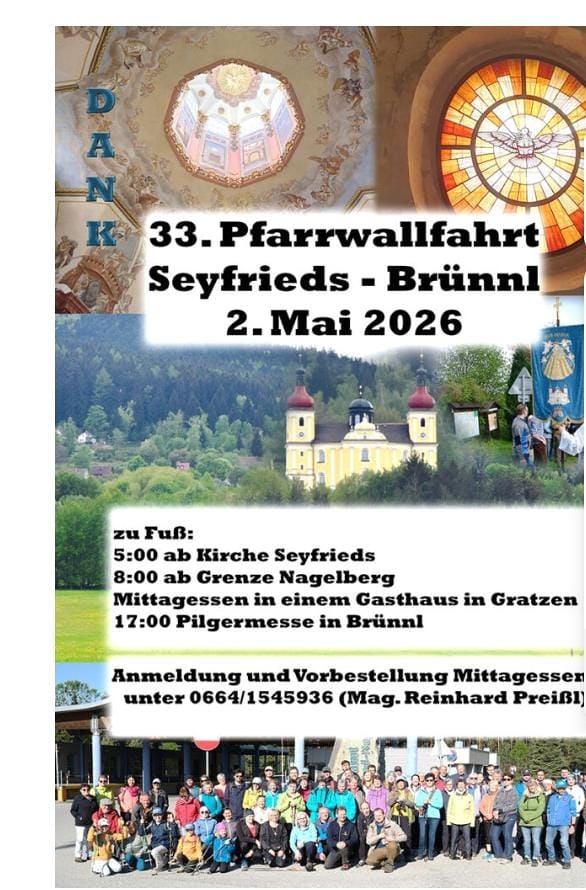 Sa 2.5. 05:00 Wallfahrt von Seyfrieds Brünnl- Dobra Voda